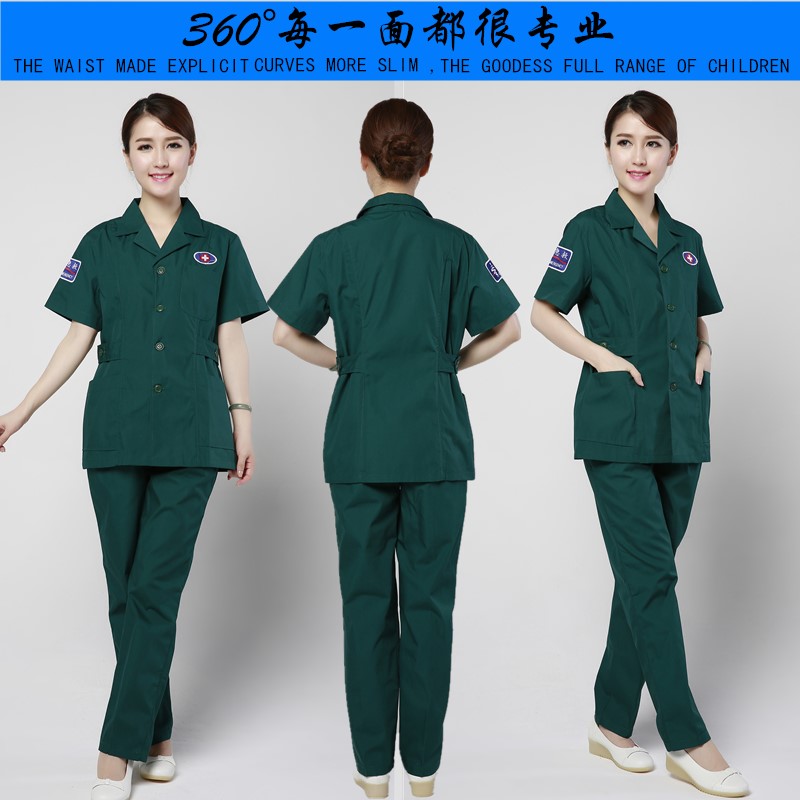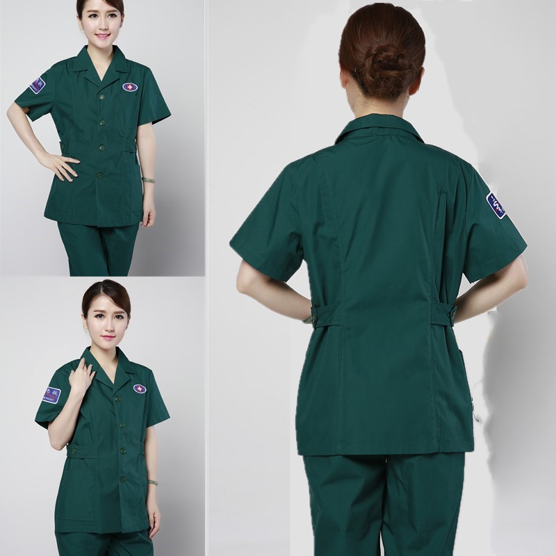 South Dingell male and female first aid uniform Nursing wear two style suit short sleeve pension domestic worker ink green