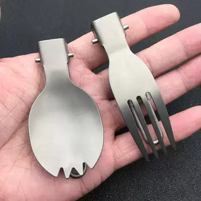 Titanium alloy folding spoon with teeth Titanium fork pure titanium spoon outdoor camping supplies travel picnic tableware