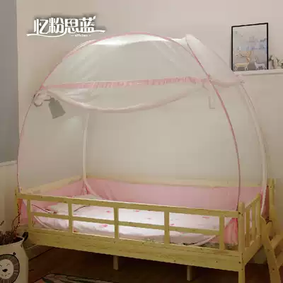 Reminiscence of pink blue splicing bed anti-fall bed bed mosquito net free of installation foldable baby yurt three door zipper