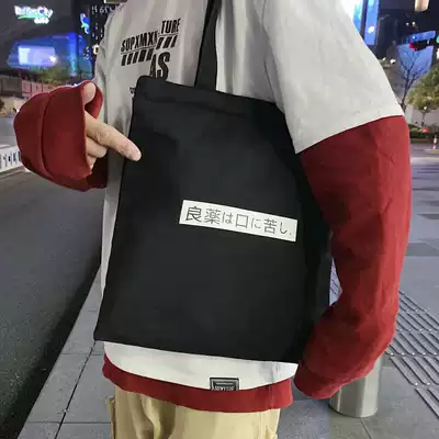 Men's cloth bag canvas tote bag retro literary Korean version student casual versatile canvas bag with zipper simple
