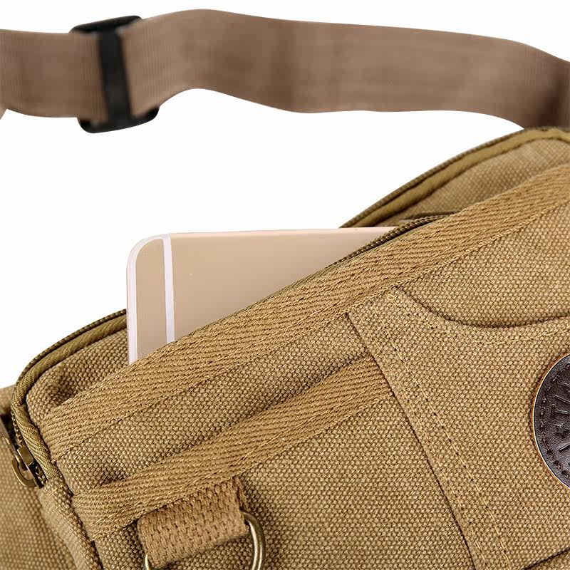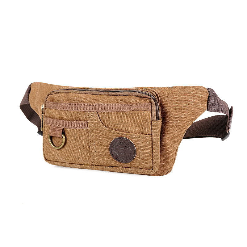2019 Korean version thickened canvas men's body-fitting waist bag new wear-resistant casual sports outdoor large-capacity running bag