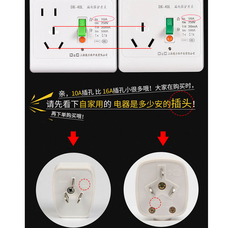 Shanghai Delixi switch 16A air conditioning leakage protection socket leakage protection 10A circuit breaker Household water heater