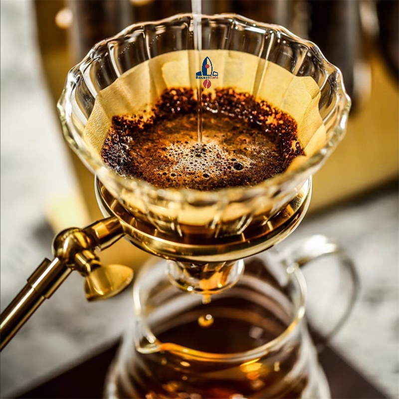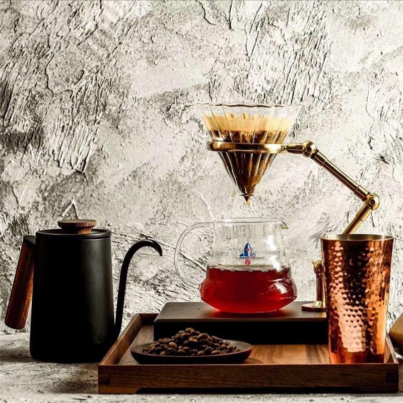 Golden alloy solid wood hand frame black alloy solid wood hand frame copper alloy solid wood straight arm hand frame polishing straight arm hand frame special polishing process joint handshaft hand frame V60 glass filter cup 1-2 people