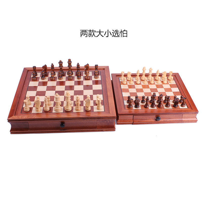 Chess suit solid wood desktop children beginners solid wood pawns big upscale red wood chessboard chess