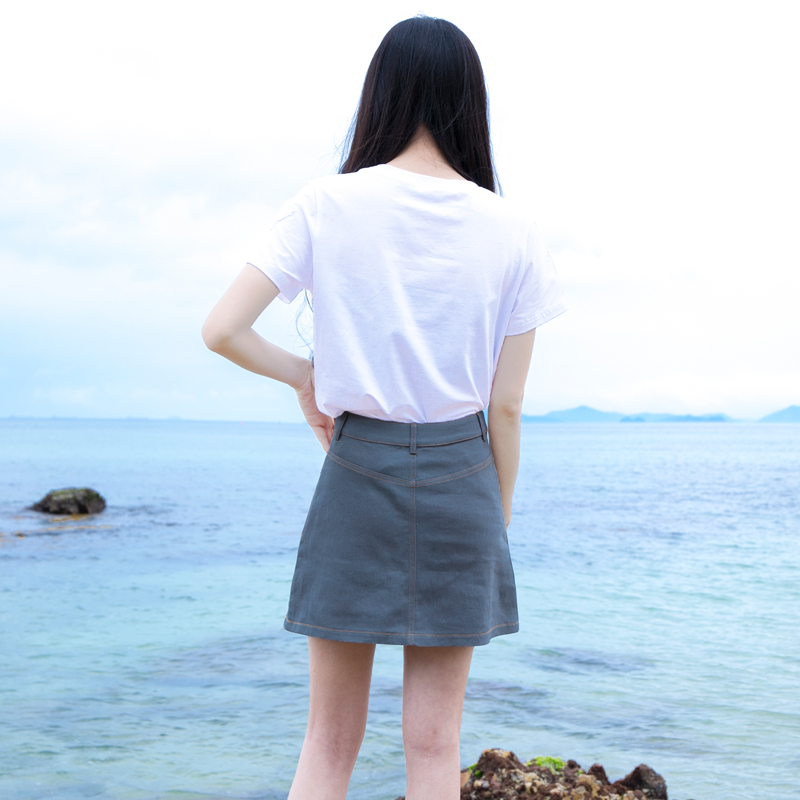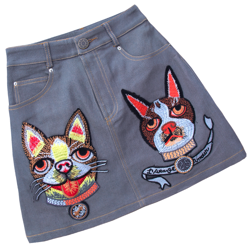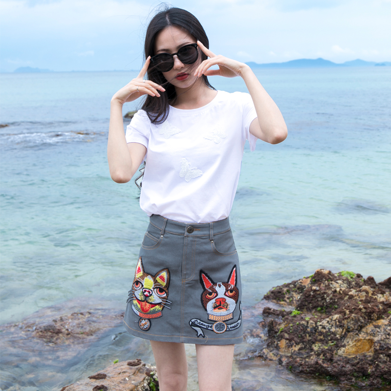 Denim skirt skirt 2019 new summer high waist embroidery all-match ins super hot a word one step skirt suit