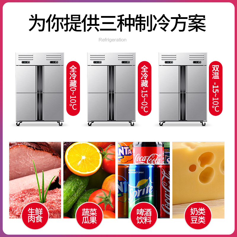 Four Doors Fridge Commercial Freezer Double Warm Vertical Stainless Steel Six Doors Freezer Refrigerated Frozen Fresh kitchen Large capacity