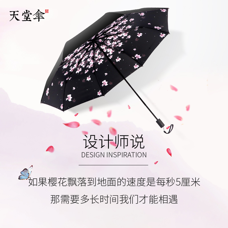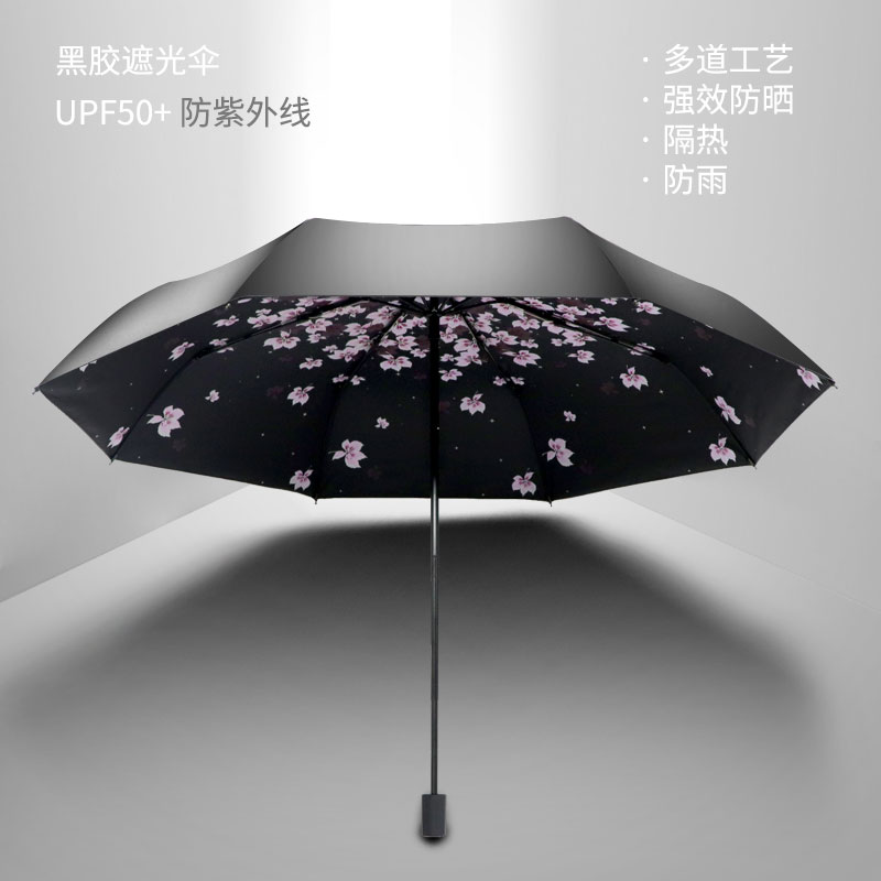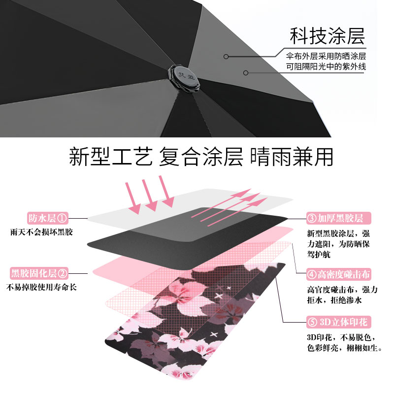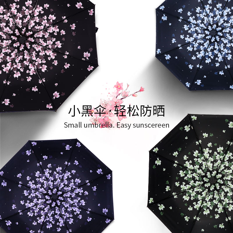 Paradise umbrella Sunscreen anti-UV parasol Women's parasol black plastic small fresh dual-use sun umbrella folding new product