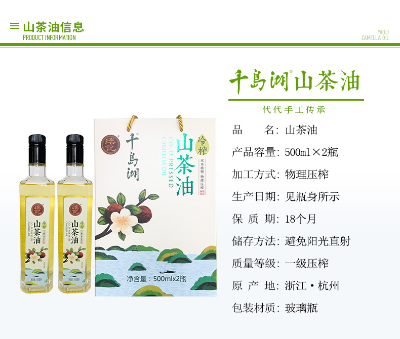 Yao Kee Kuril Lake Cold Pressed Mountain Tea Oil 500mlx2 Bottle Gift Box Loaded Tea Seed Oil Edible Physical Press Oil