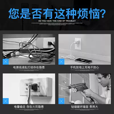 Space aluminum power sticky hook wall socket power cord storage layer rack multi-function plug adhesive hook black nail-free no trace