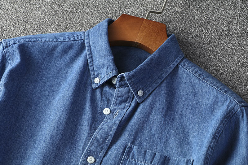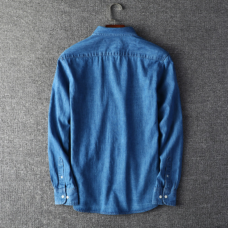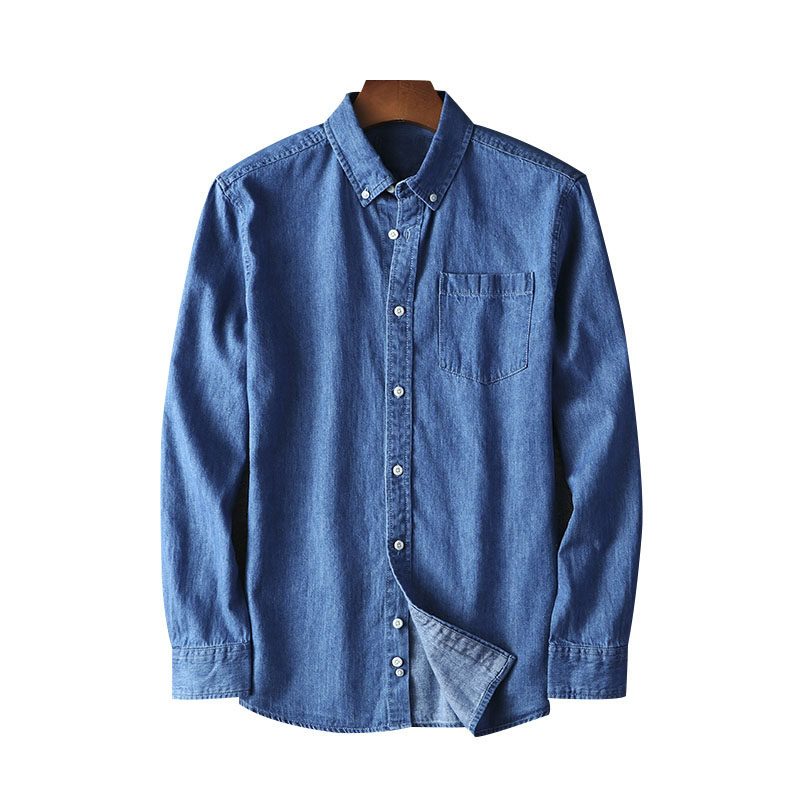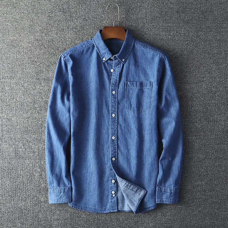 Denim Shirt Foreign Trade Men's Spring New Turn-collar Denim Shirt Pure Cotton Washed Long Sleeve Shirt Shirt Man
