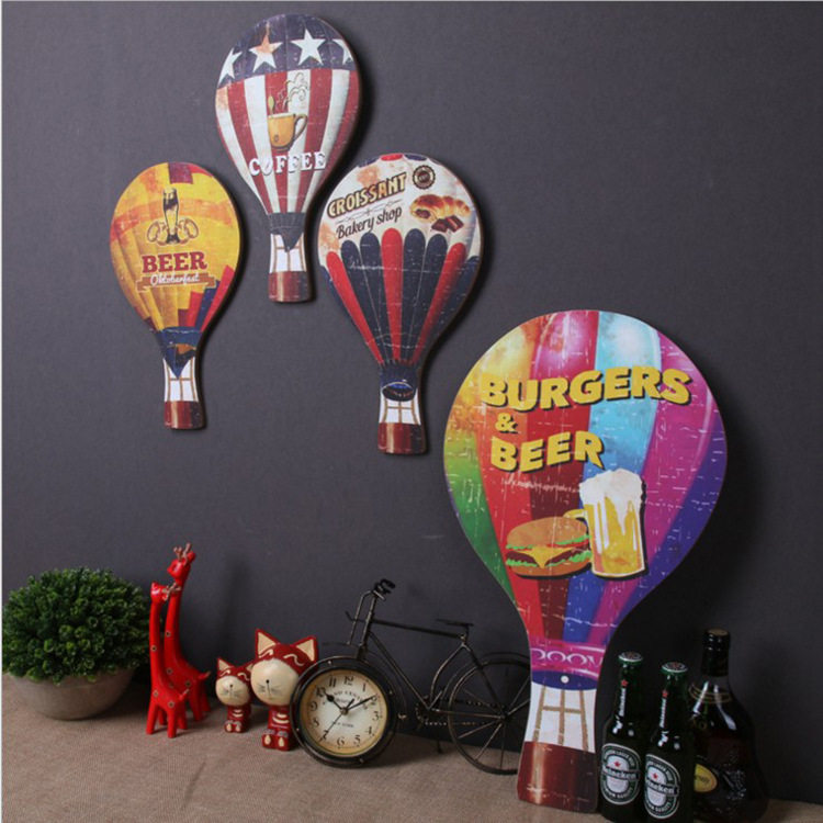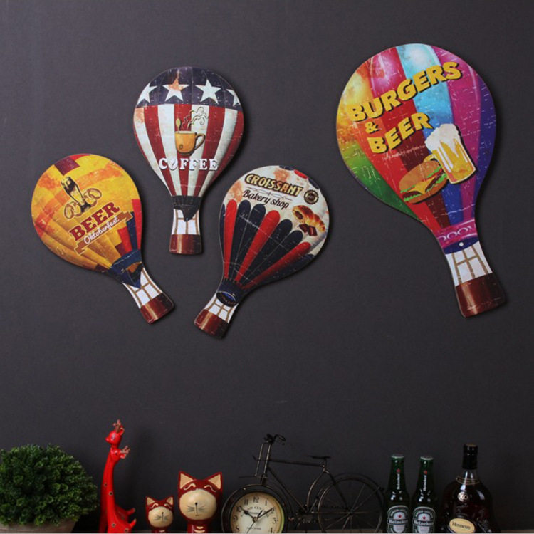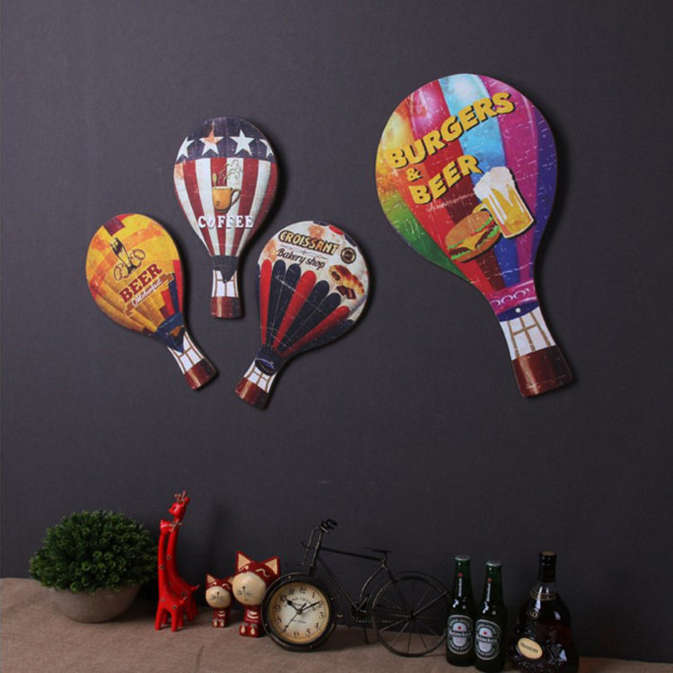 American retro industrial style wooden hot air balloon wall three-dimensional wall hanging personality bar milk tea shop creative wall decoration