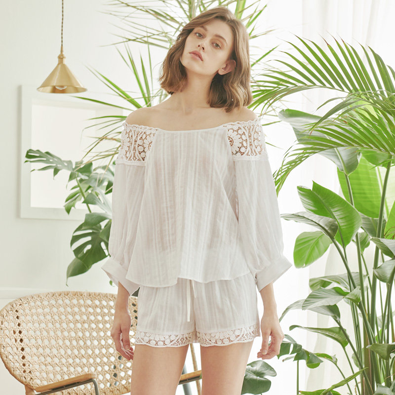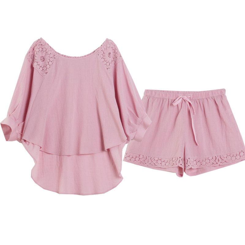 Duoduo coco pajamas women's spring and summer new cotton lace thin sexy mid-sleeve shorts suit can be worn outside