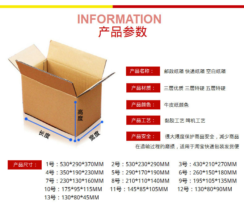 Taobao No. 1 box express No. 1 box postal general moving carton carton flat carton 53*29*37 cm