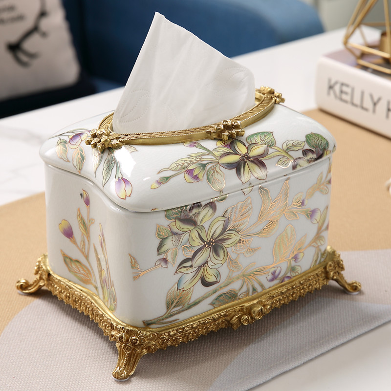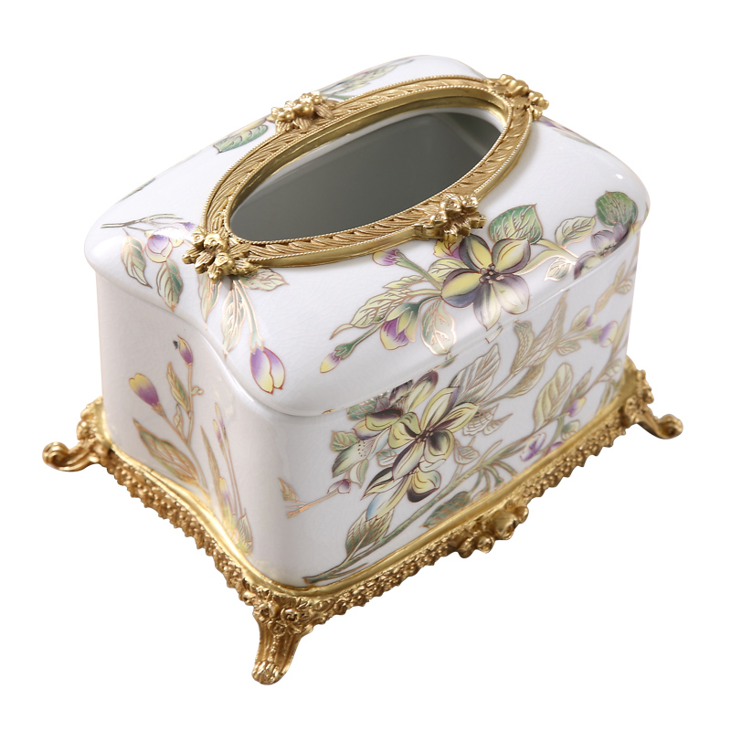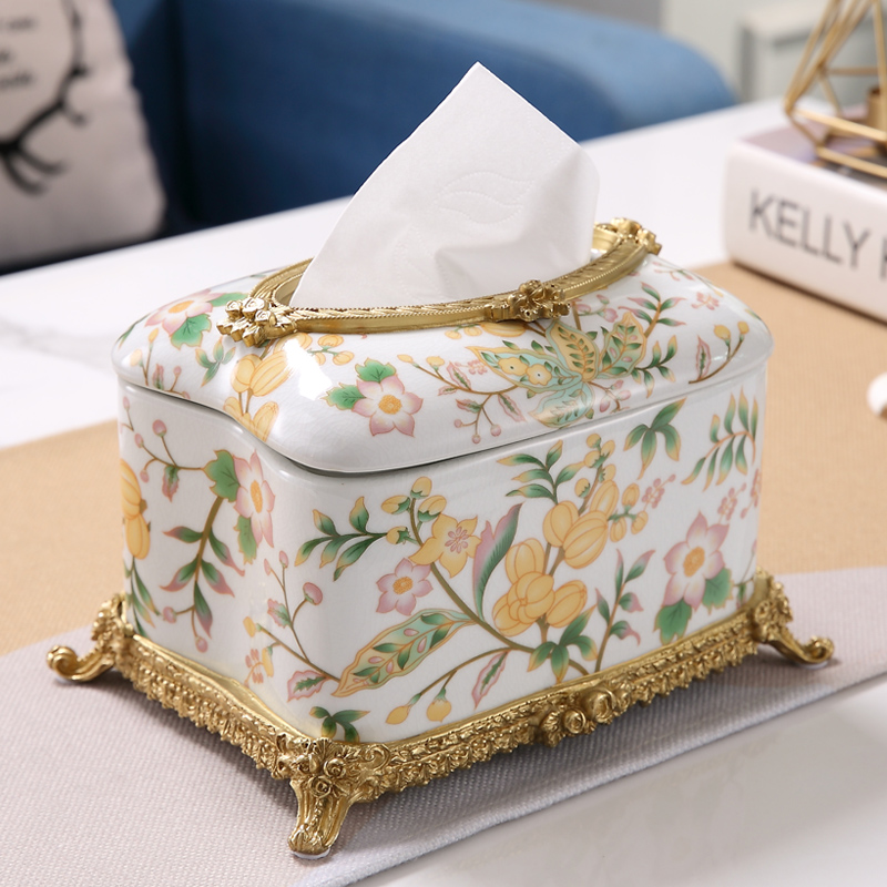 European luxury ceramic copper towel box retro villa soft housesCopper art drawing box