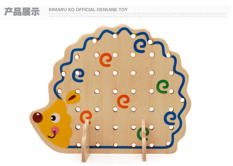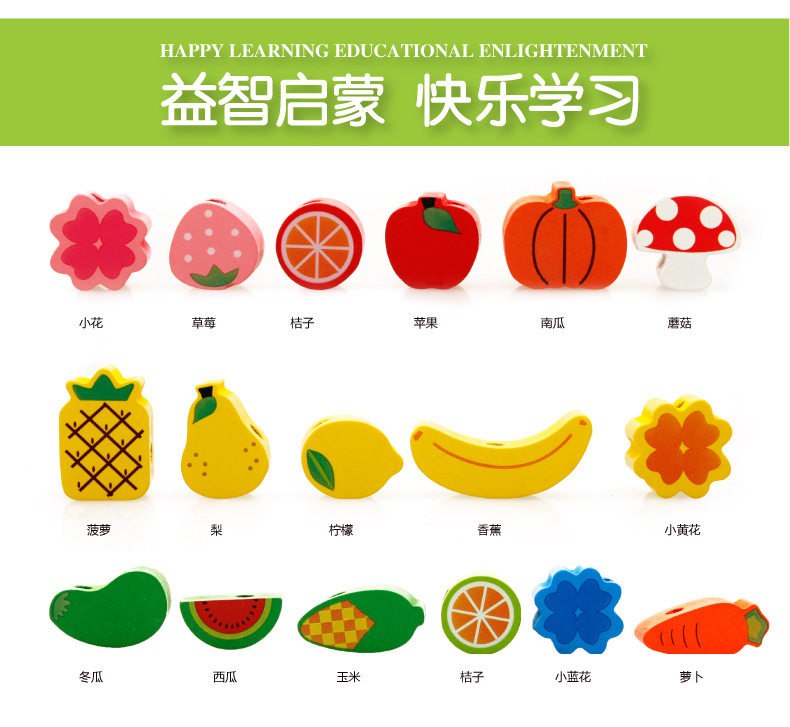 Wood Pellets New String Beads Threading Children Puzzle Early Education Toys Wooden Building Blocks Hedgehog Fruit Strings of Leaf Hot Pin
