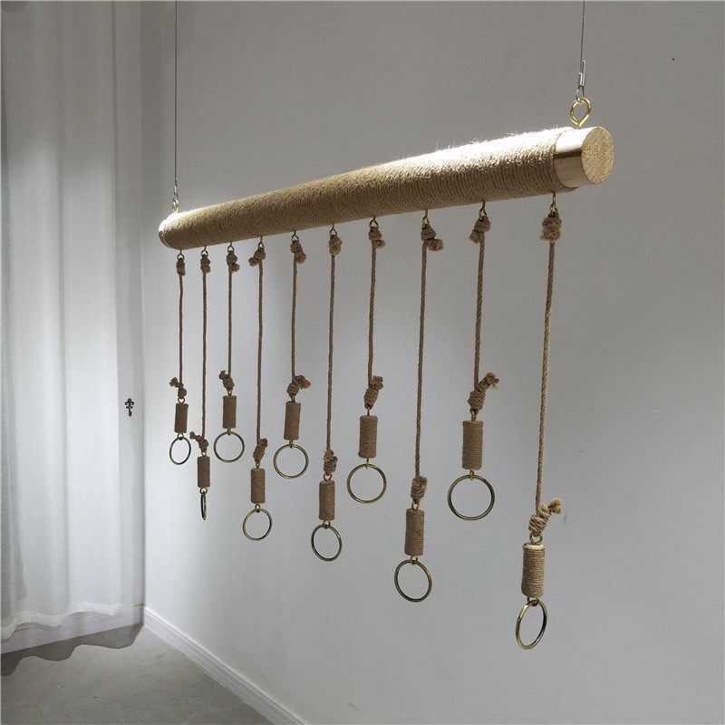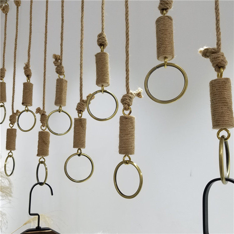 Clothing store hanger hanger hanging steel wire hook hanging hemp rope wooden stick children's clothing store display rack women's clothing shelf