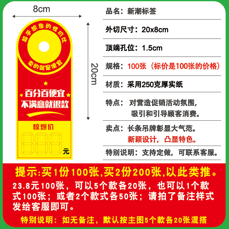 100 pop big number discount hanging card clothing stores list price tag price tag factory price sale price promotion