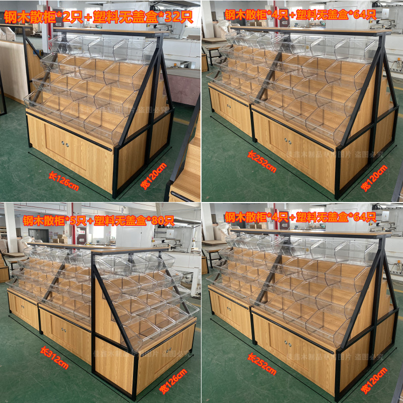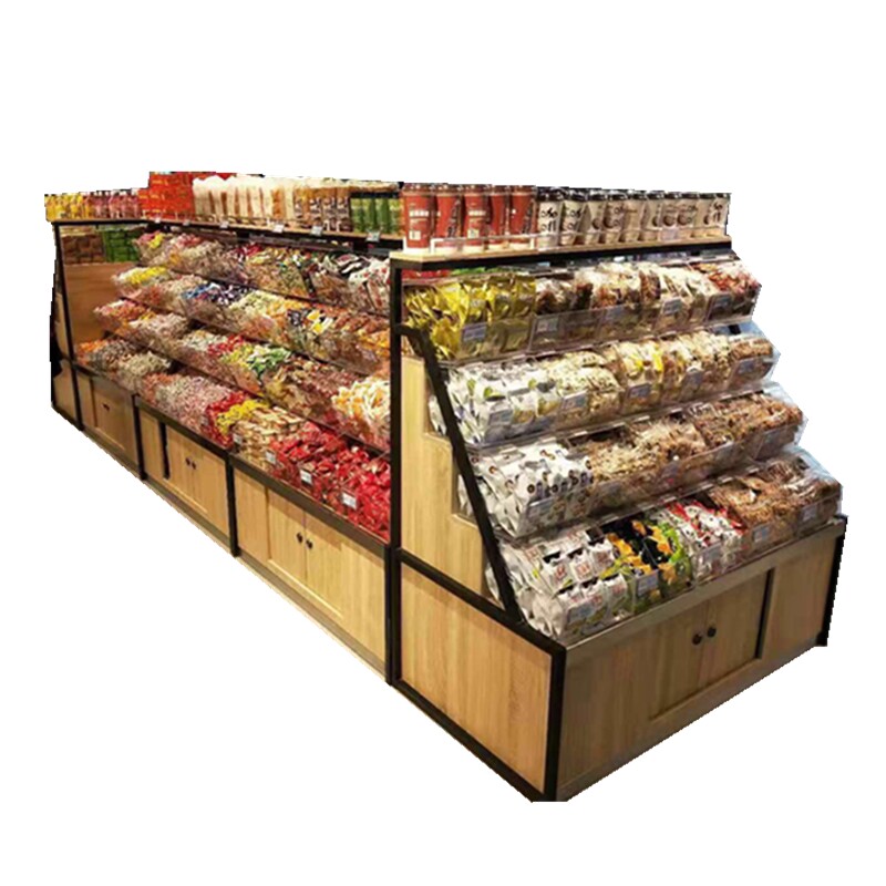 Supermarket Spread Shop Store Snacks Casual Foods Bulk Candy Shelf Storage Wood Display Cabinet