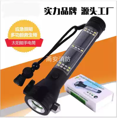 Multifunctional solar car flashlight strong light emergency car safety hammer long-range light fire brigade recommended