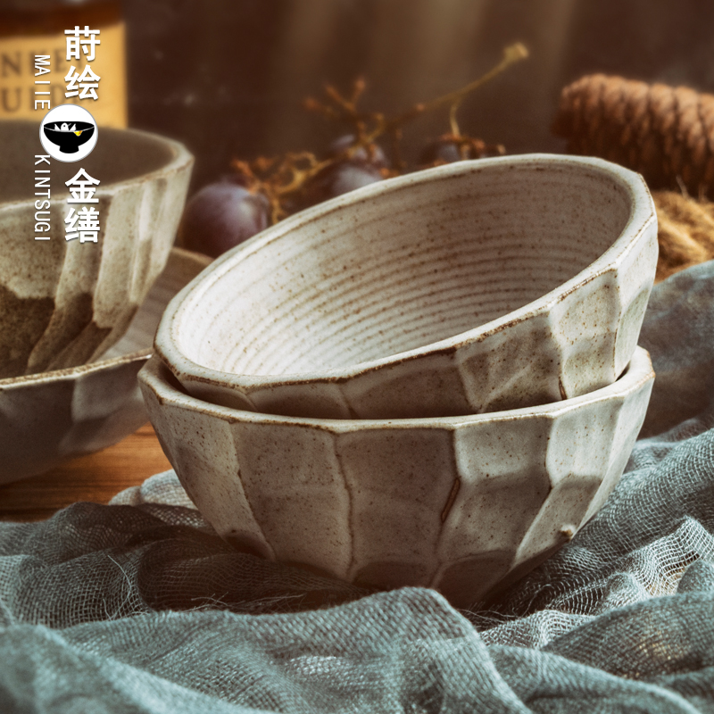 Japanese handmade coarse pottery tableware set Soup bowl Creative retro nostalgic old-fashioned quaint old earth pottery bowl plate