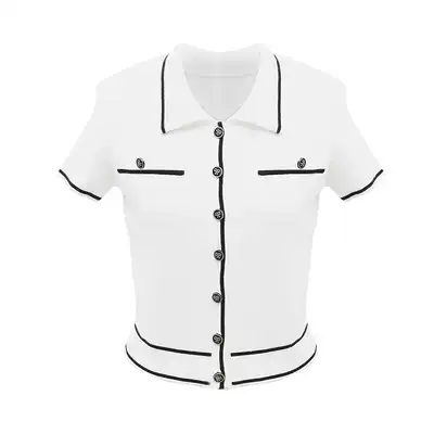LIN T-shirt women's short sleeve 2021 New retro navy fashion temperament short knitted base shirt top