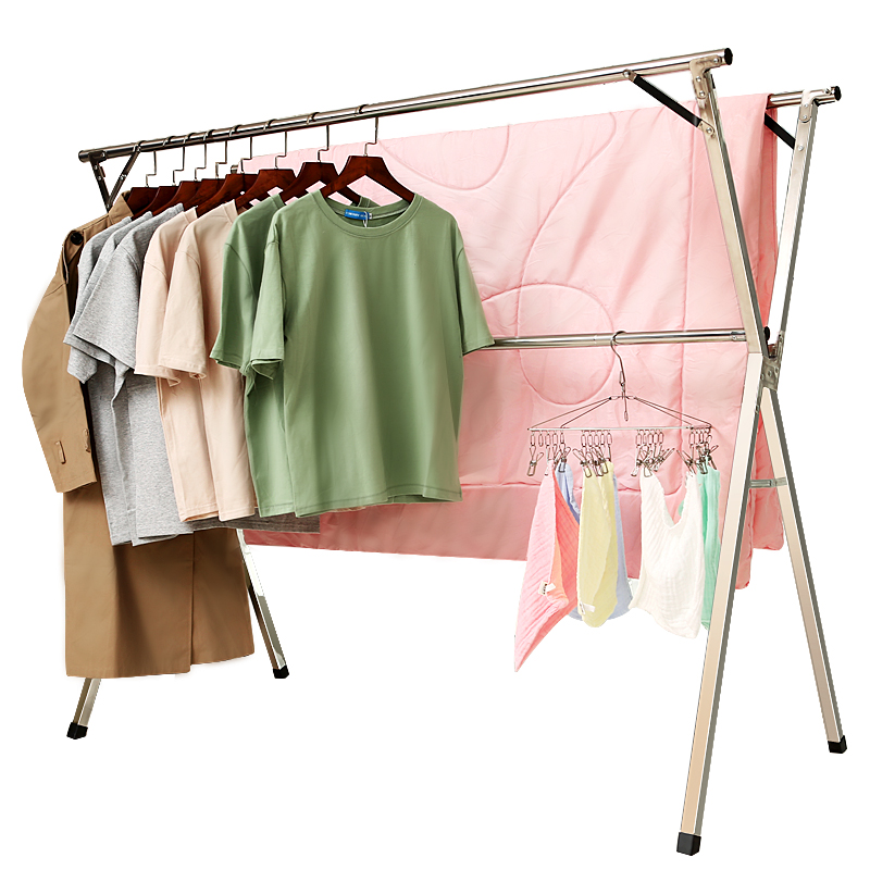 Stainless steel clothes drying rack floor-to-ceiling folding double-bar clothes rack heightened clothes drying rack balcony home drying quilt clothing rack