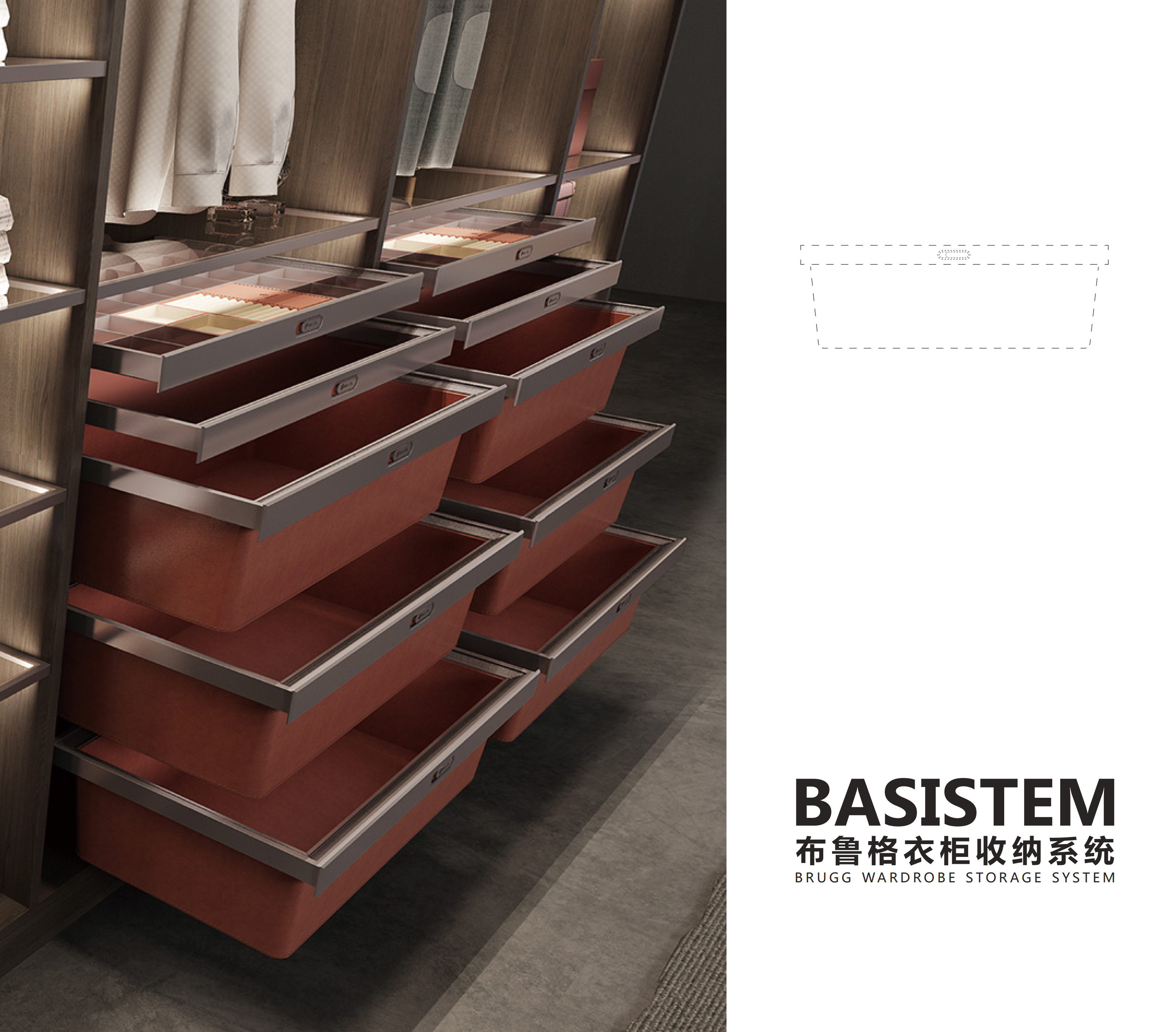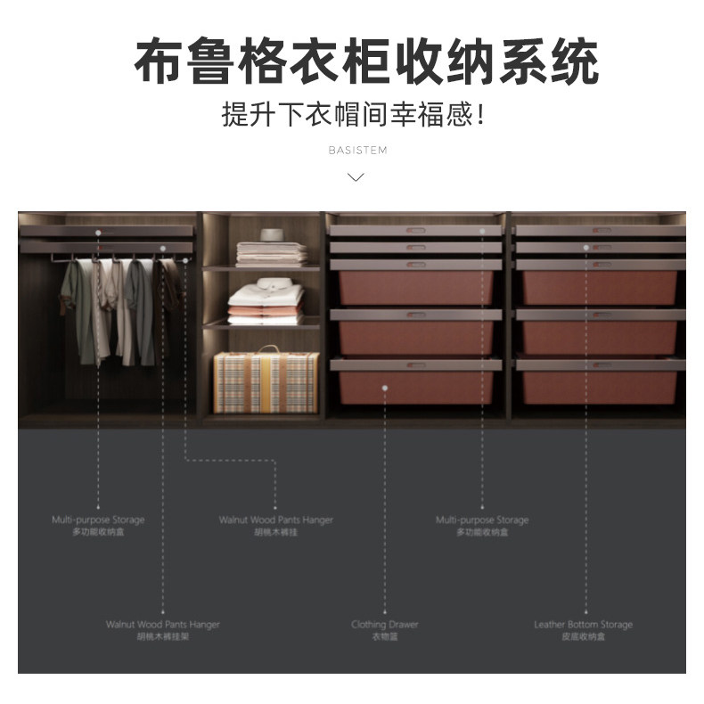 Switzerland imported BASISTEM Bass cloakroom walnut Bass trouser rack wardrobe storage box leather clothes basket