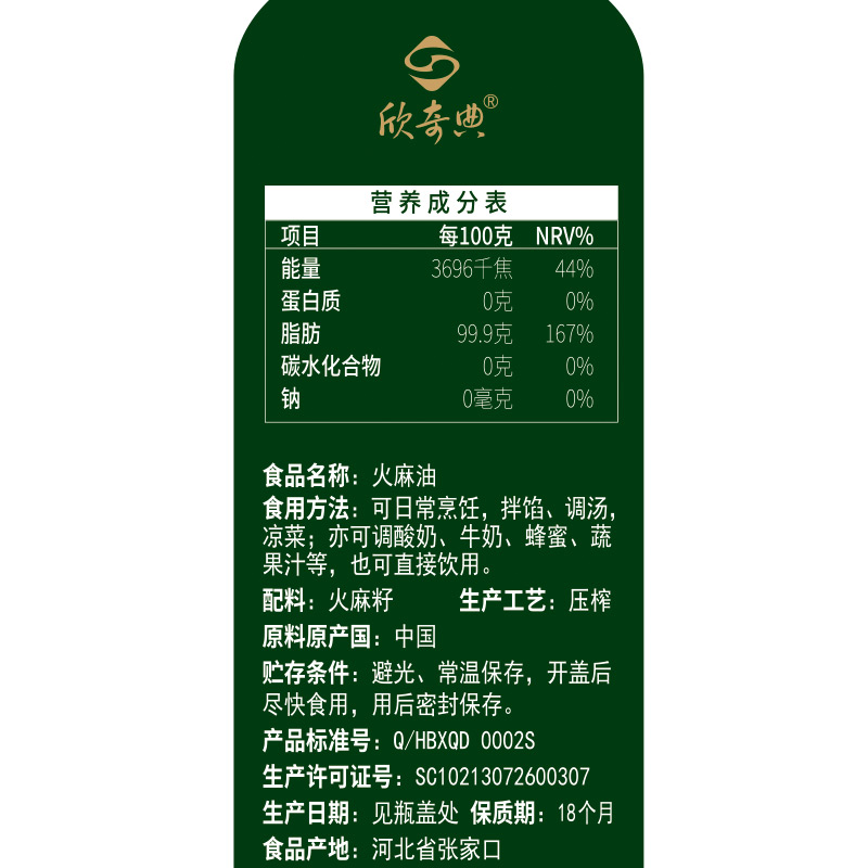 Xin Qi Dian Guangxi Bama hemp oil First grade cold pressed pure hemp seed oil edible oil 125ml portable packaging
