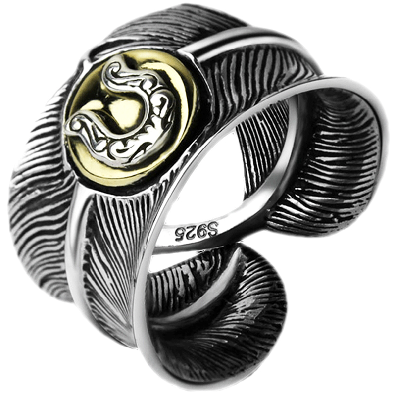 925 Silver Horseshoe opening ring to the Ancient Tai Feather Feather Man and Women's index finger adjustable silver ring in Indian