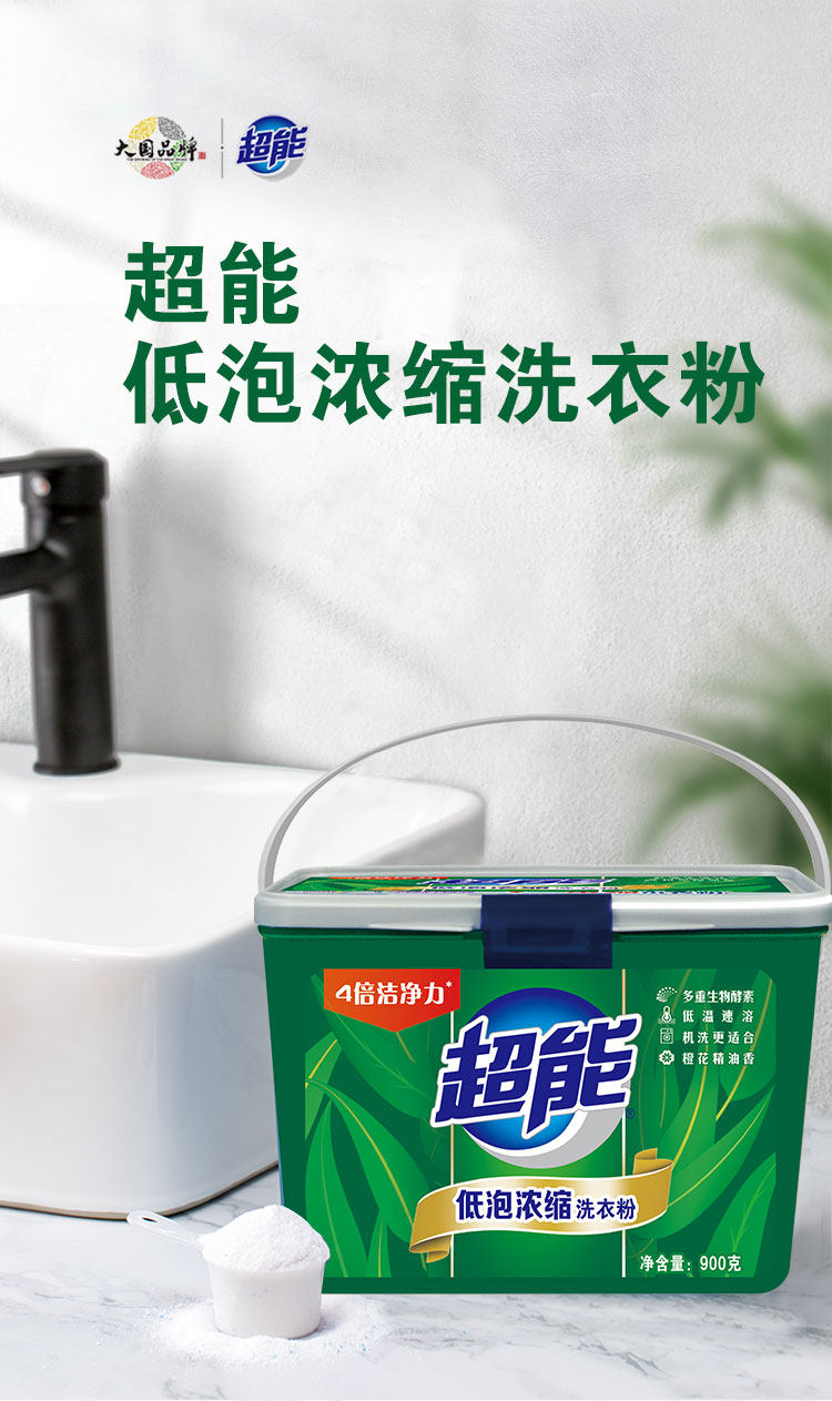 Super energy low bubble concentrated washing powder 900g barrels 4 times clean power lavender scent machine wash dedicated strong effect decontamination stains