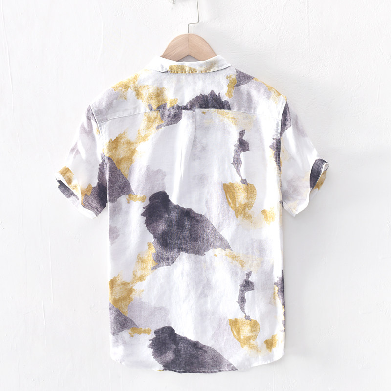 Extremely Hemp Beach Holiday Printed Short Sleeve Linen Shirt Men Summer Personality Casual Youth Loose Cotton Linen Shirt