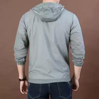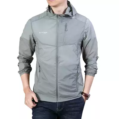 2021 summer men's outdoor light and loose skin clothing Men's fashion solid color pocket stretch hooded sunscreen clothing