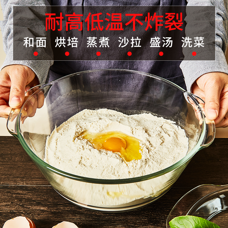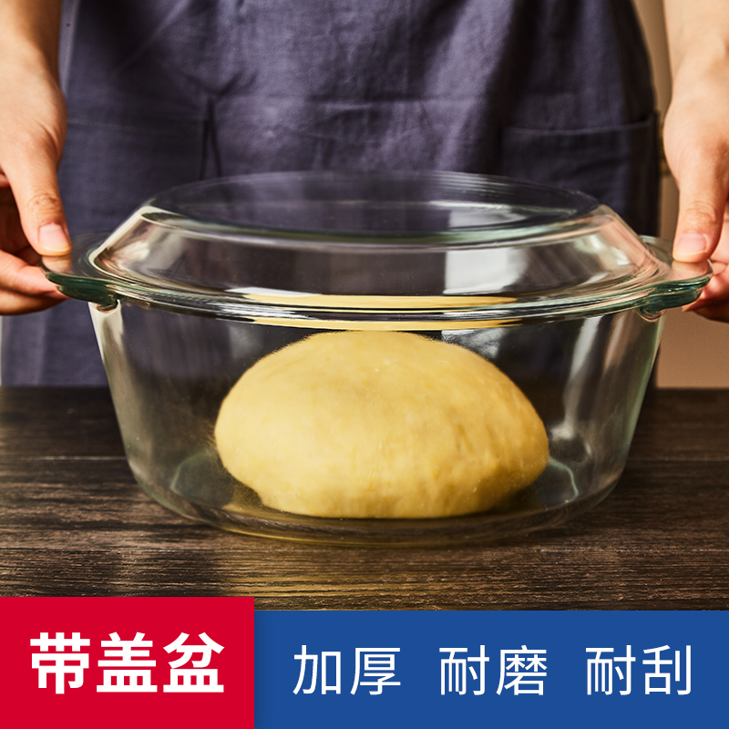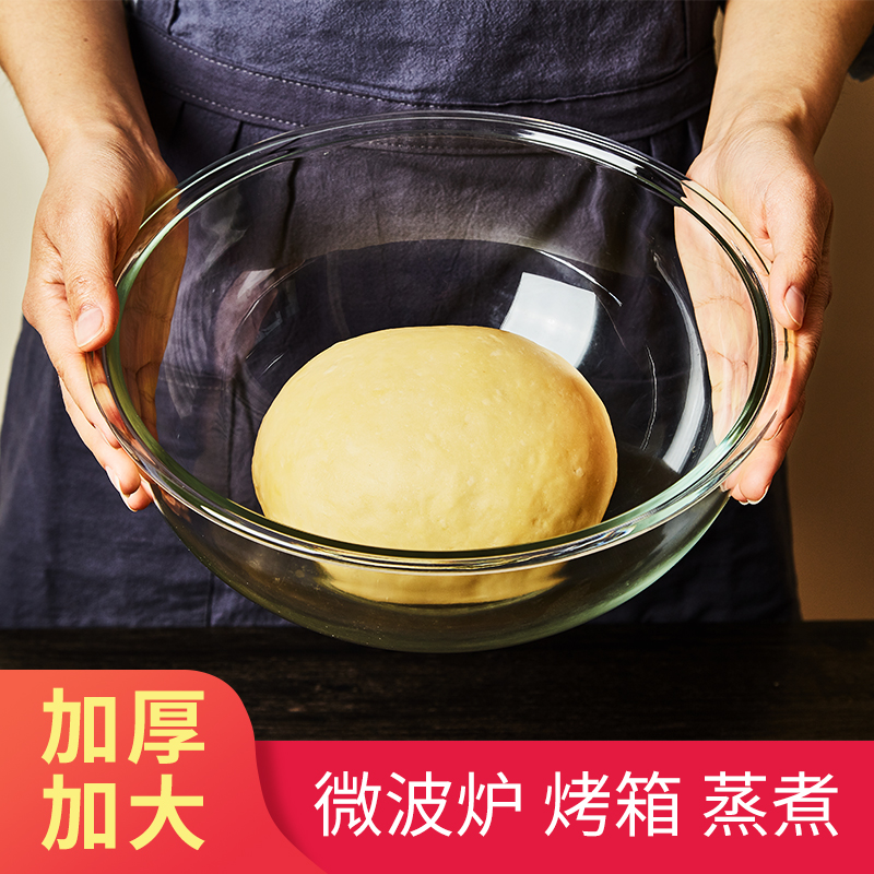 Glass bowl Household microwave oven with lid High temperature salad bowl Large glass kneading bowl and basin Transparent heat-resistant bowl