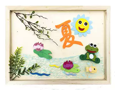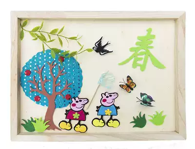 Kindergarten spring, summer, autumn and winter wall decoration ring creative material decoration handmade diy creative frame corridor wall decoration three-dimensional wooden frame