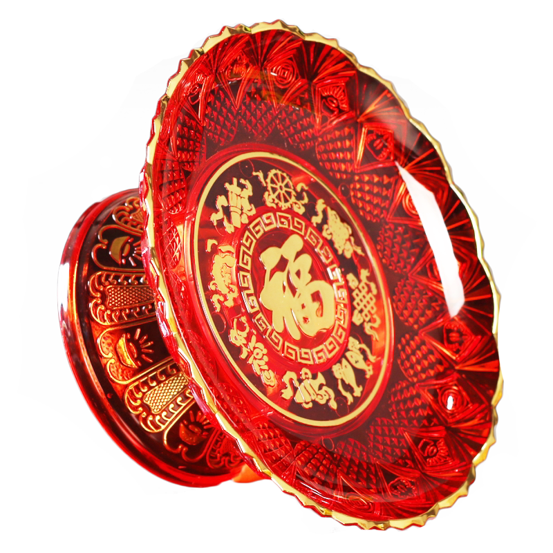 For the fruit plate home to worship the god of wealth for the Buddha fruit plate plastic tribute plate in front of the Buddha acrylic red blessing plate