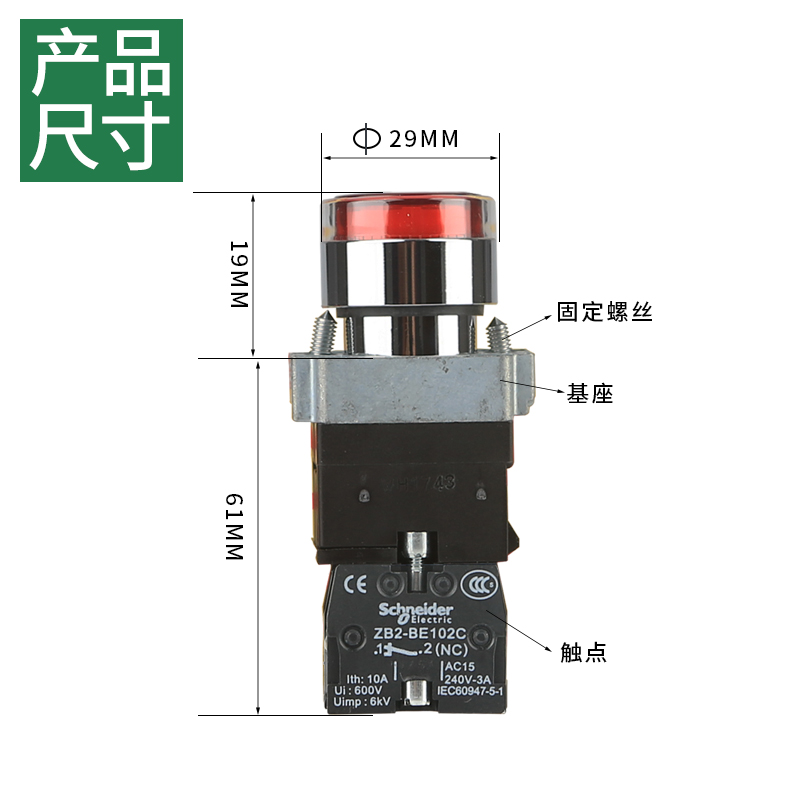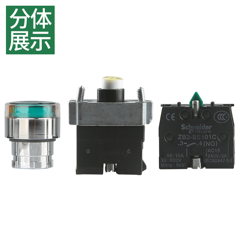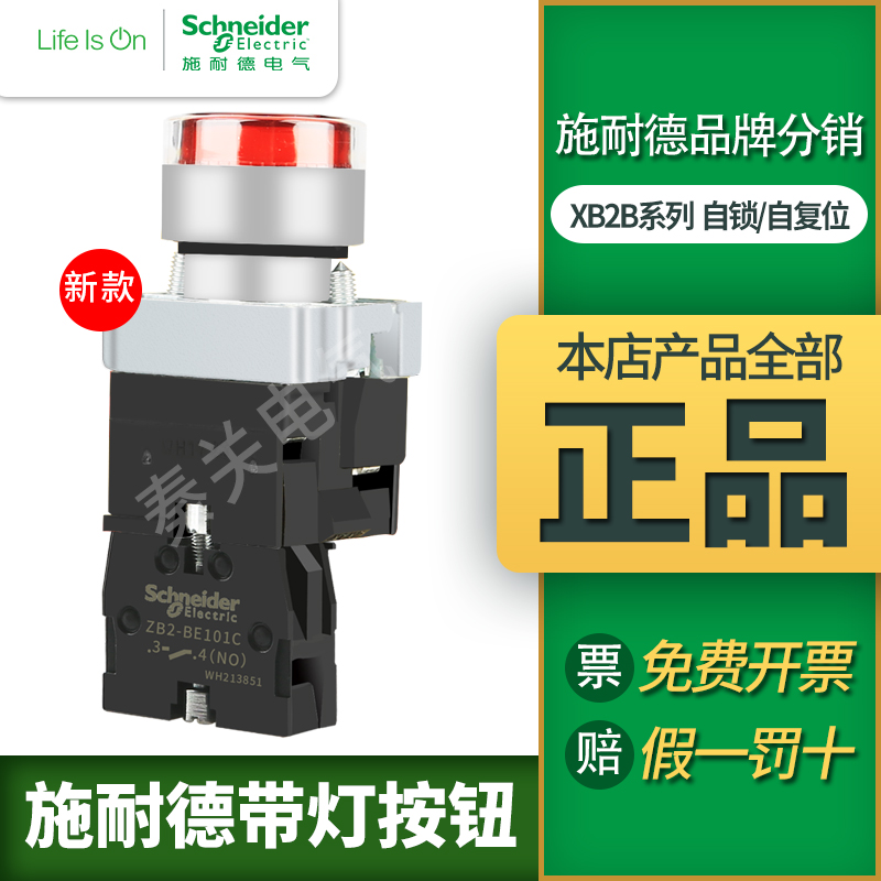 Schneider with light button switch self-reset XB2BW33B1C red green flat head button 24V 220V self-locking