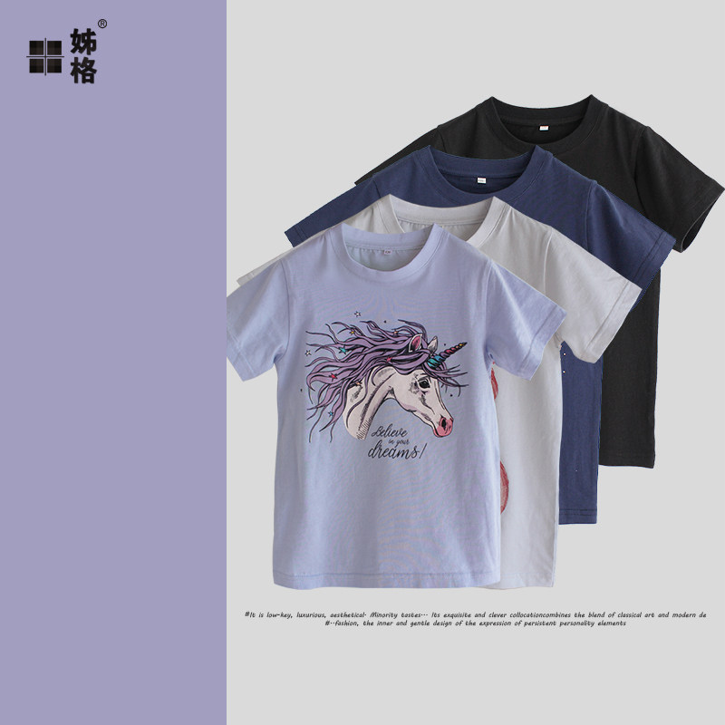 Children Summer children's clothing T-shirts 2020 new boys and girls CUHK children's cotton round collar printed short sleeves knitted sweatshirt