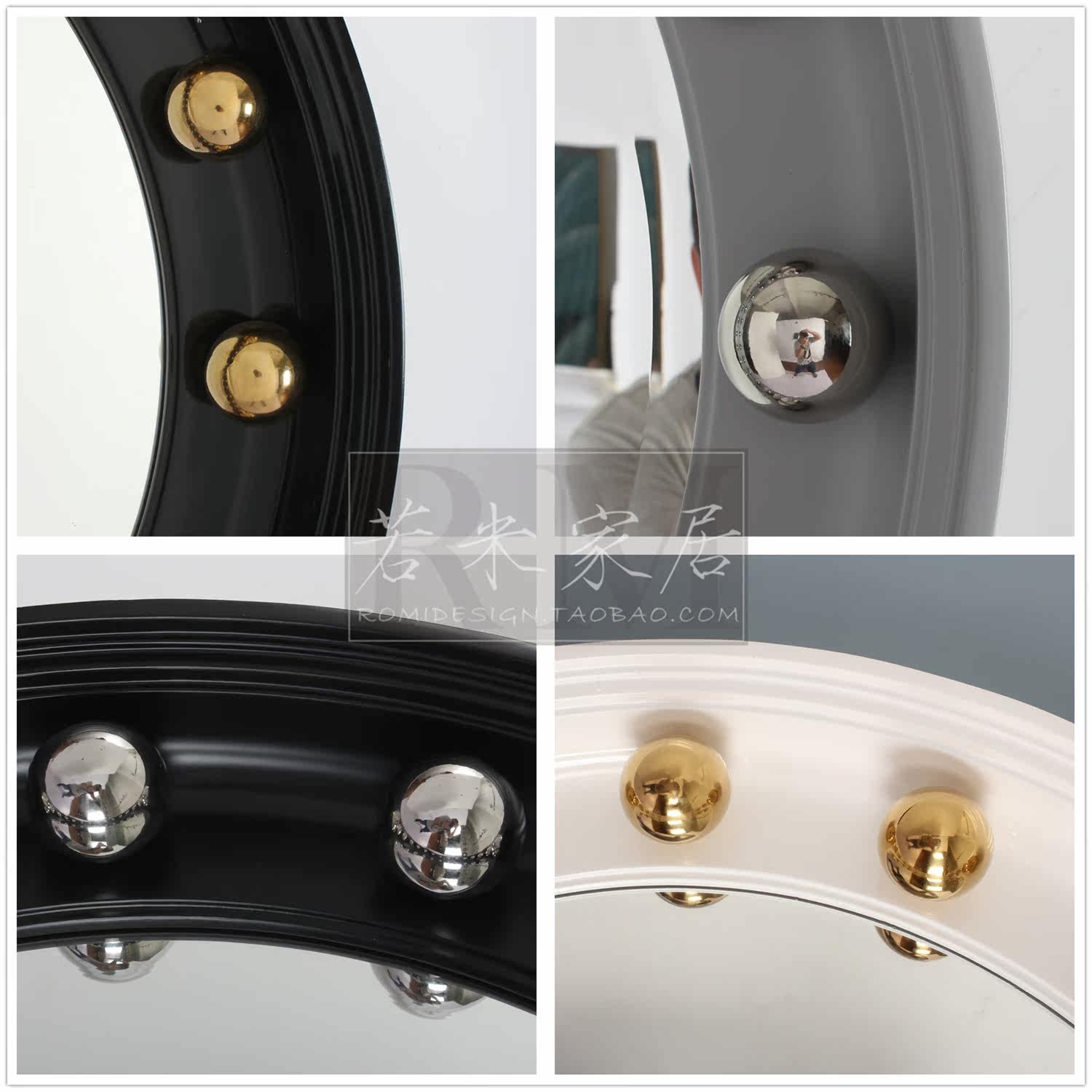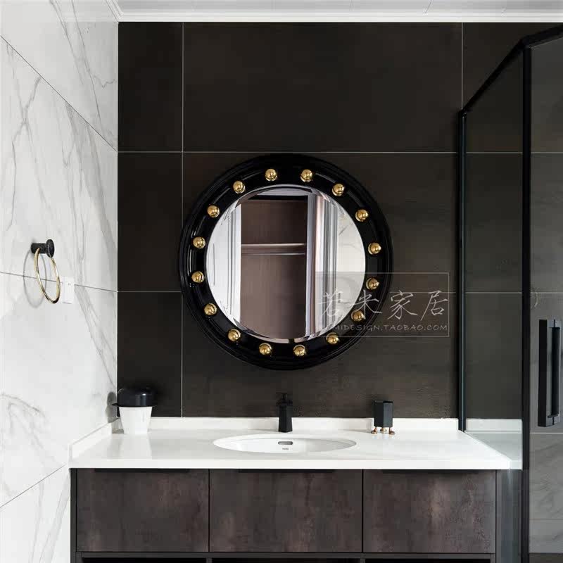 90x90 round solid gold black and white grey light luxury modern minimalist living-room sofa pendant decorative mirror art mirror