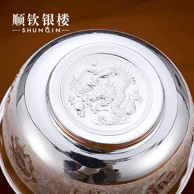 Shunqin Silver Building 999 feet silver thickened Babao silver bowl sterling silver household double-layer insulation tableware to send elders ornaments
