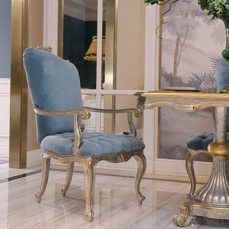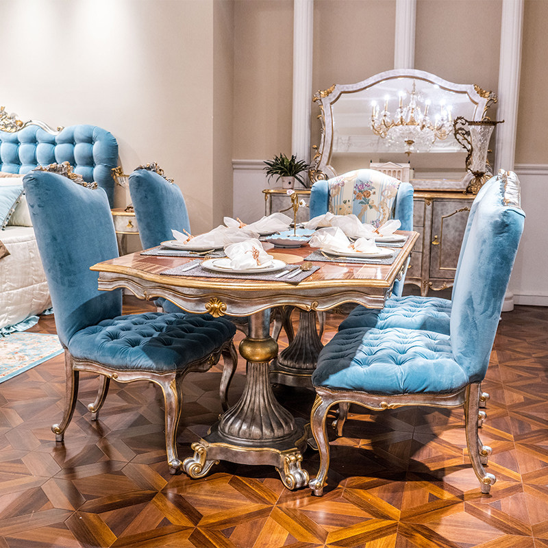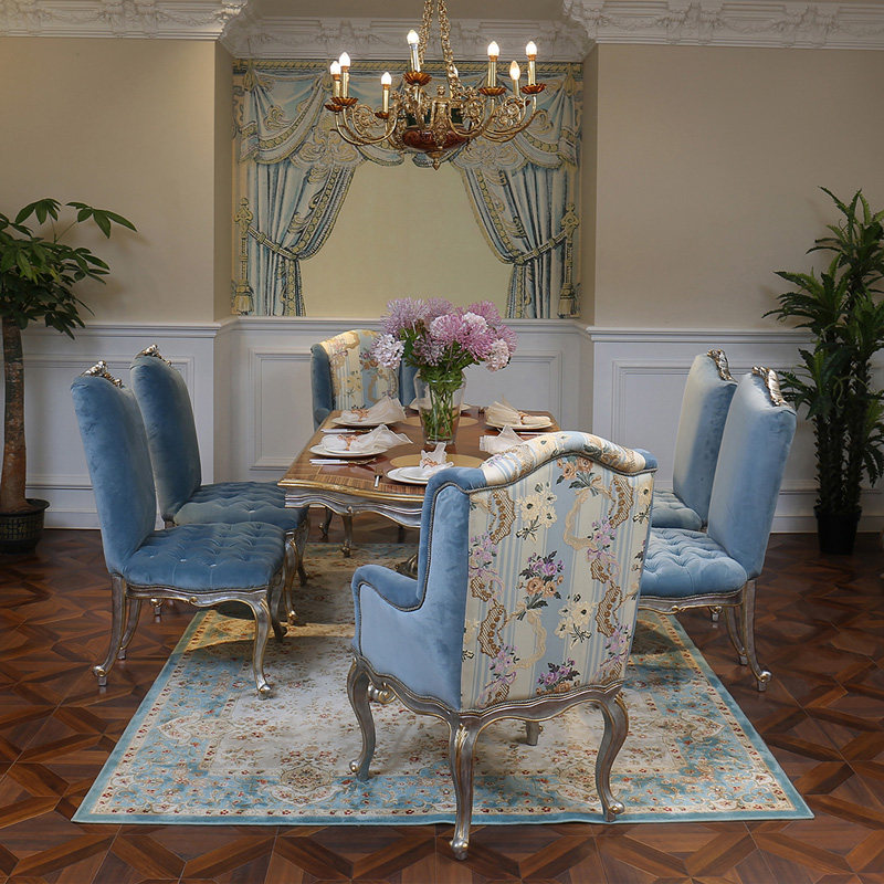 Silver gray log color dining table blue with armchair blue armchair silver gray dining chair silver gray side mirror silver gray side cabinet silver gray wine cabinet
