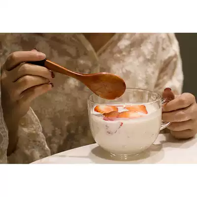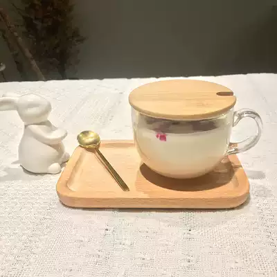 Tempered breakfast cup tempered breakfast cup wooden cover gold spoon big head Brown-wooden spoon big head black-wooden spoon small head Brown-wooden spoon small head black-wooden spoon