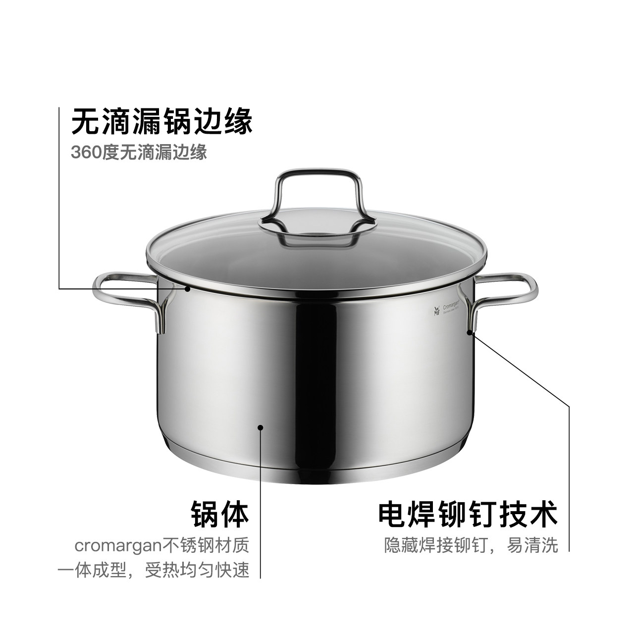 Germany WMF household stainless steel binaural soup pot double thickened steamer cooking milk pot soup stew pot Non-food pot