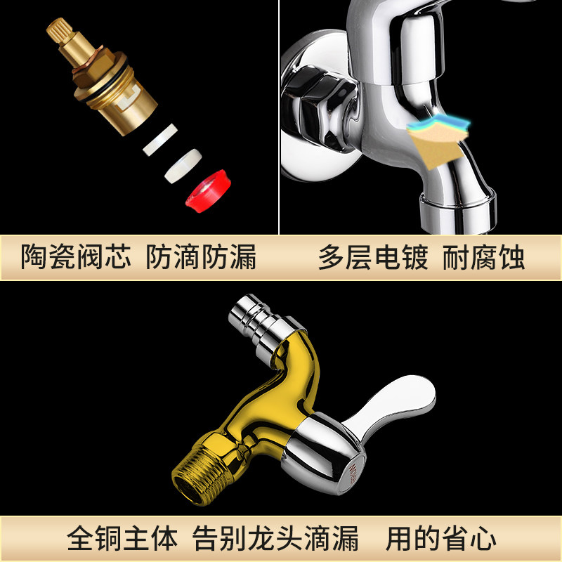 Fine copper washing machine corner valve Fine copper thickened washing machine faucet Fine copper round handle thick washing machine faucet Double switch washing machine Mop pool faucet One in two out faucet Gift 4 points Of the official monopoly guarantee Extended mop pool faucet