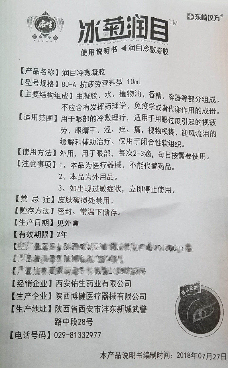Eastern Saihanfang Ice Chrysanthemum Refreshing 3-in-one eye film blindfold eye drops moisturizing cold compress gel 10mL bottle