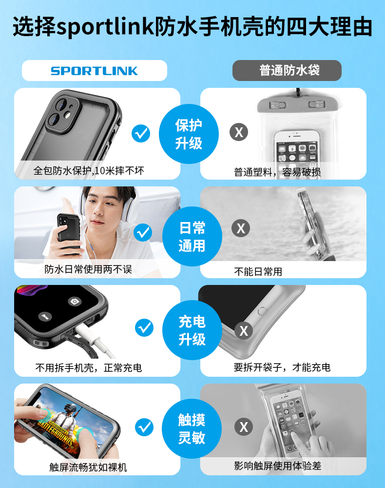 SPORTLINK is suitable for Apple XR mobile phone waterproof case XSMax sealed iPhone XS diving protective case anti-drop dustproof lens all-inclusive swimming se2 second generation 3 generation silicon