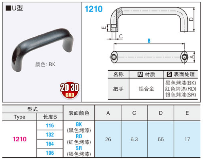 1210-116 1210-116 132164 196-BK RD SR aluminum alloy handle oval handle Handeway