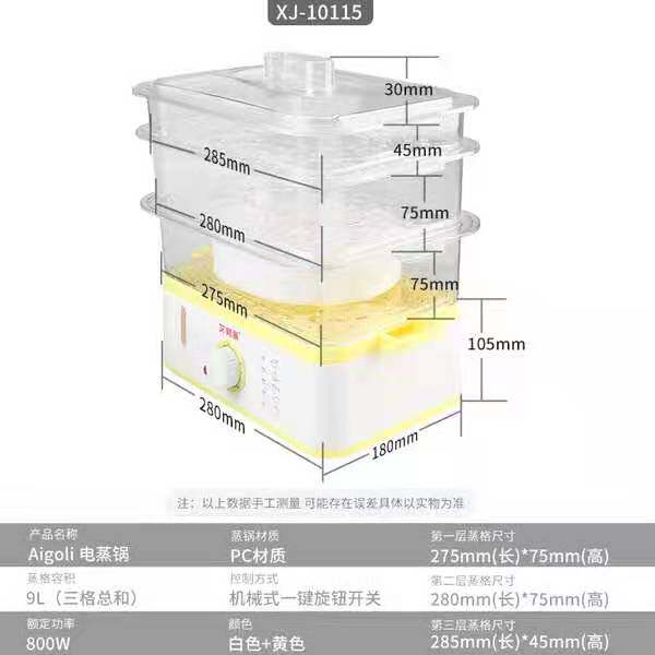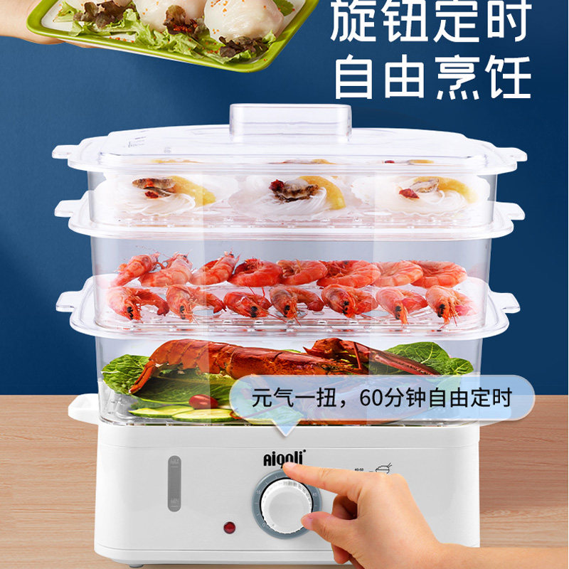 Aigri direct three layers mini-electric steam cage anti-heating rectangular transparent multifunctional household small electric steam pot