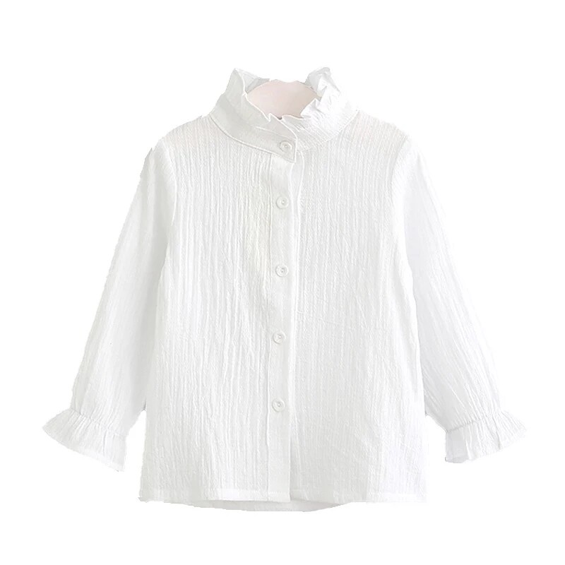 Korean version of children's clothing girls baby pure cotton edge collar Western style class A thin white long-sleeved shirt shirt top spring and summer