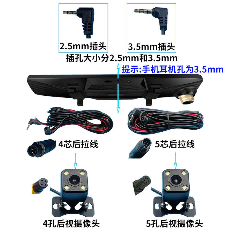 Travel recorder rear view camera connection line streaming rear lens 4 core 2 5mm connection extended transmission line
