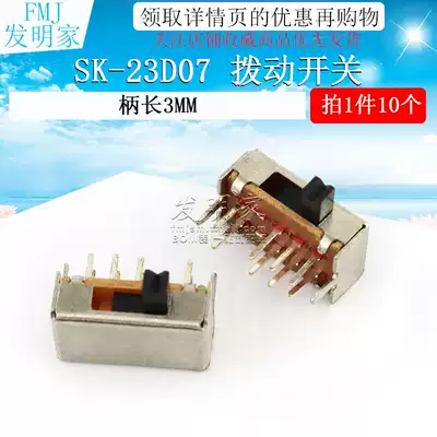 Toggle switch SK-23D07 horizontal 8-pin two-row third-speed 2P3T side dial slide handle 3MM 10 PCs